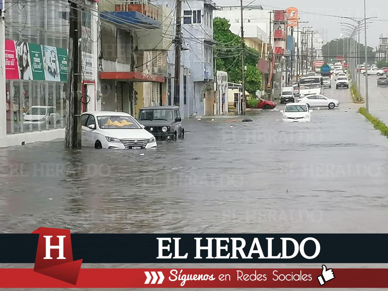 Quedan automóviles varados por calles inundadas en Coatzacoalcos