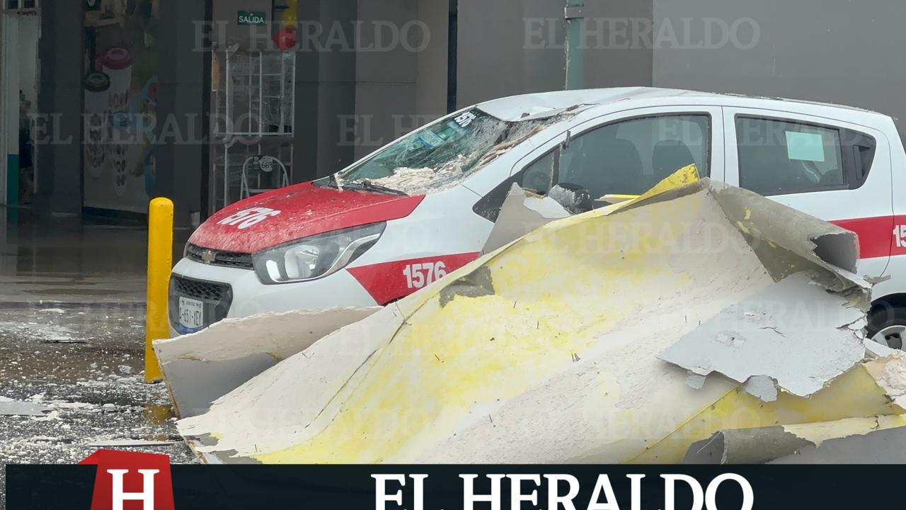 En Coatza, cae fachada de Soriana sobre taxi