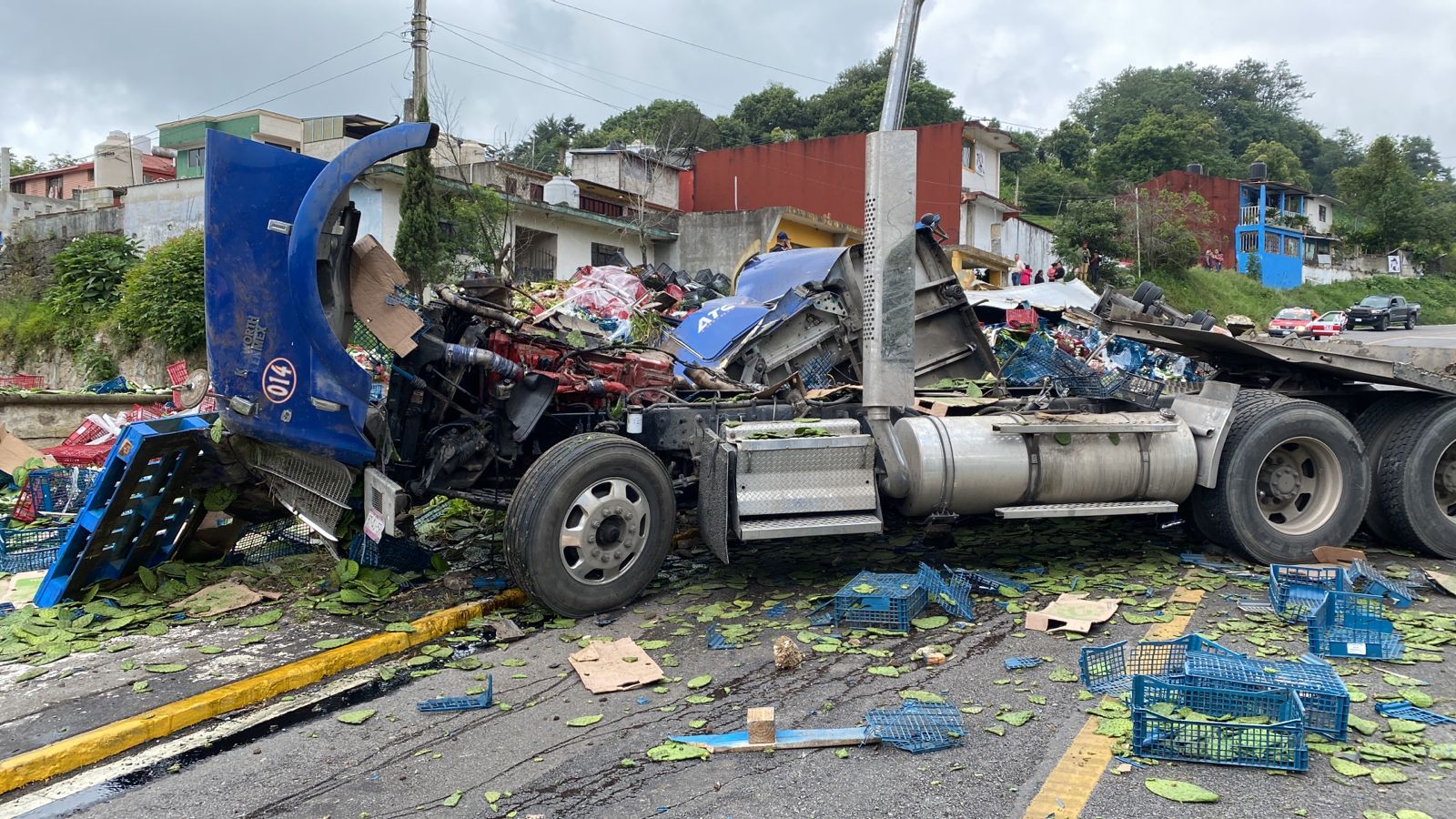 Vuelca tráiler cargado de nopales