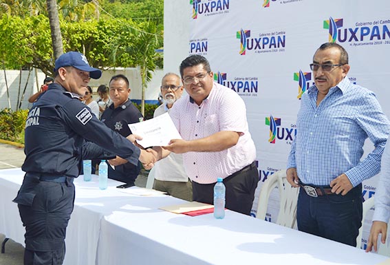 Acto seguido se procedió a la entrega de las constancias, a los efectivos: Rogelio Cruz Anaya Nicanor Cruz del Ángel, Luis Alberto Cruz Fernández, Ricardo Esteban Ovando, Marco Antonio Olivares Gómez y Osiel Vázquez Cruz, así como los dos efectivos que recibieron capacitación en primeros auxilios, Héctor Javier Ambrosio Pérez y Gustavo García Franco.