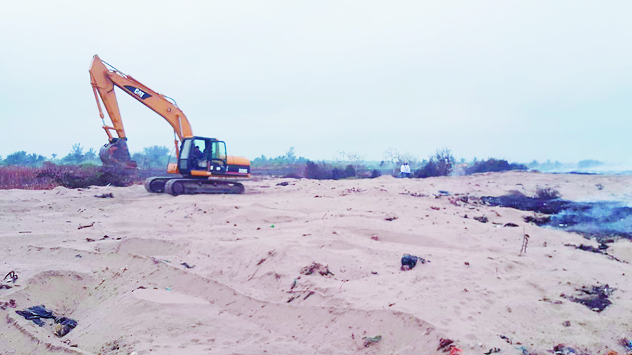 "Continuamos trabajando, desde el sábado que comenzó la contingencia hemos laborado en dos frentes, aquí en el de fondo donde se remedia con arena con el apoyo de 9 volteos, dos máquinas y una retro excavadora y un tractor y se trae arena que dejaron los nortes para cubrir más rápido y por atrás combaten los bomberos con dos pipas y el equipo especial, ahí es entrar directamente donde están las fumarolas", expresó.