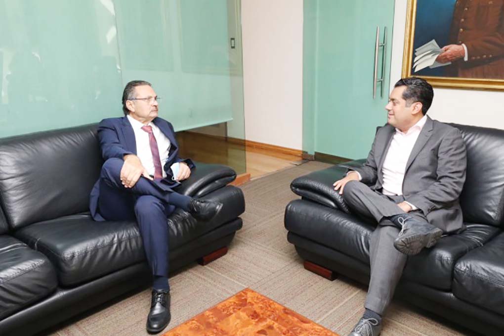 El presidente de la Mesa Directiva de la Cámara de Diputados, Sergio Gutiérrez Luna, recibió este miércoles en el Palacio Legislativo de San Lázaro al director general de Pemex, Octavio Romero Oropeza, quien le expresó los planes de reactivar la producción del Complejo Petroquímico Cosoleacaque.