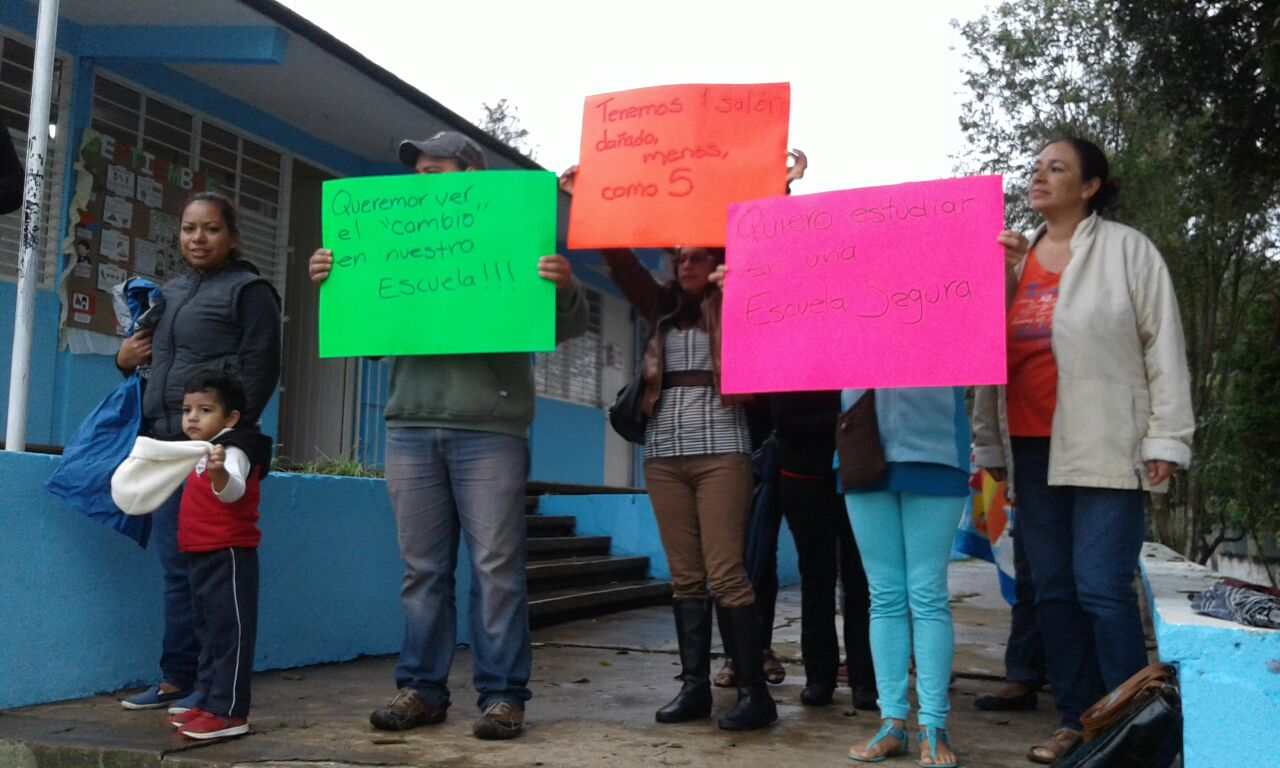Nuestra escuela se está cayendo, gritan frente a Palacio de Gobierno