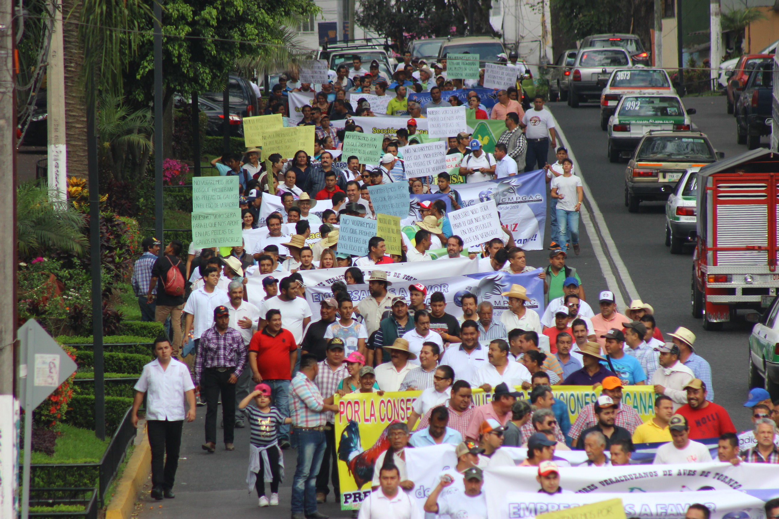 Galleros marchan en Xalapa para que prevalezca su actividad