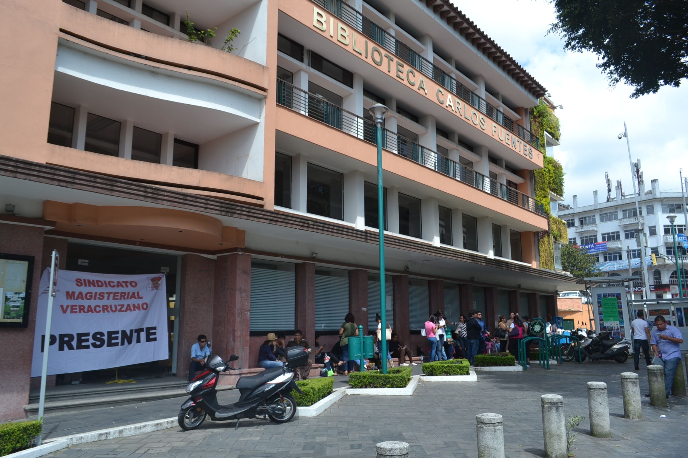 Protestan trabajadores de la biblioteca Carlos Fuentes