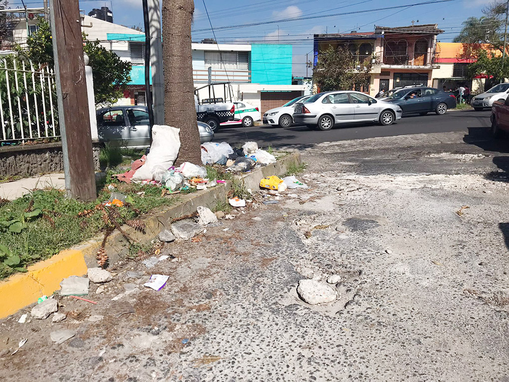 Denuncian montones de basura y baches en calle Coatepec