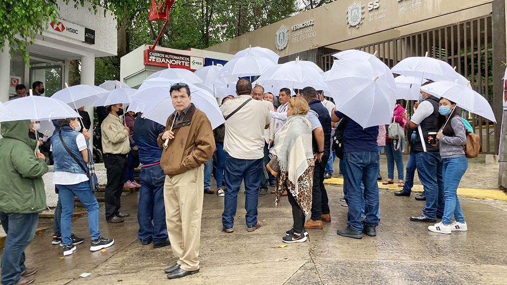 Protestan trabajadores en Sesver; exigen restitución de cuotas