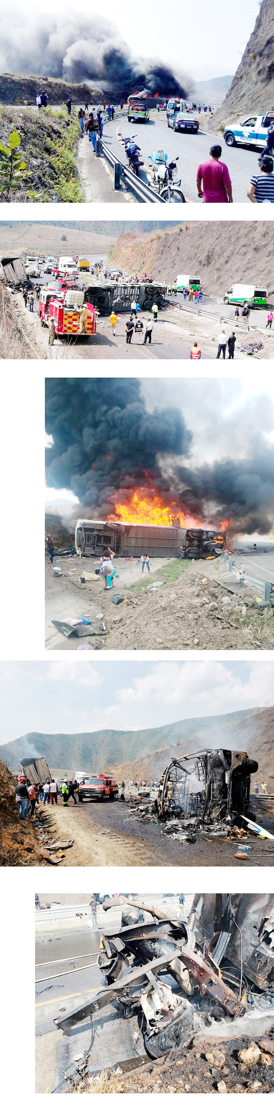 Cuando el tráiler con número de placa 888-ED-4, del servicio público federal, se quedó sin frenos al descender las cumbres de Maltrata, justo al llegar al kilómetro 245, donde se ubica el entronque al municipio de Maltrata, embistió al autobús de turismo con número económico 1072, que se dirigía a Chiapas, procedente de Juquila Oaxaca, de la línea camionera Transportes La Candonia, SA de CV, ocasionando que ambas unidades se incendiarán tras el encontronazo.