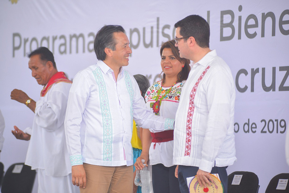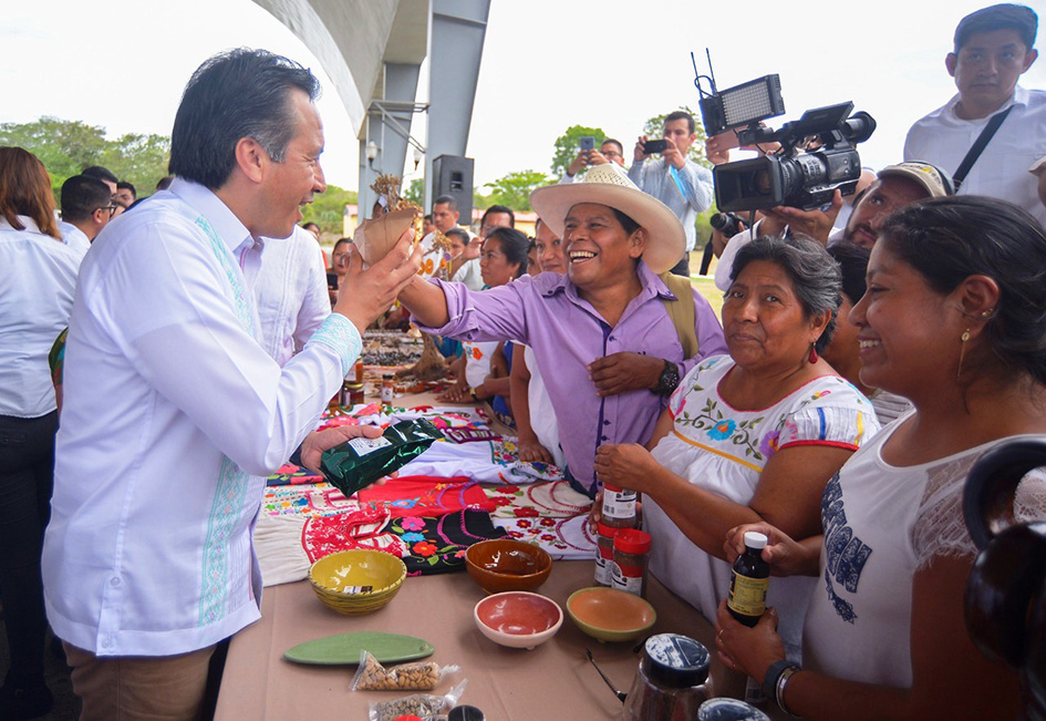 Papantla, Ver., 17 de julio de 2019.- El gobernador Cuitláhuac García Jiménez y el titular de la Secretaría de Desarrollo Económico y Portuario (SEDECOP), Enrique Nachón García, pusieron en marcha el programa Impulso al Bienestar de los Productores Veracruzanos que dará prioridad a artesanos y pequeños fabricantes de los municipios de alta y muy alta marginación.