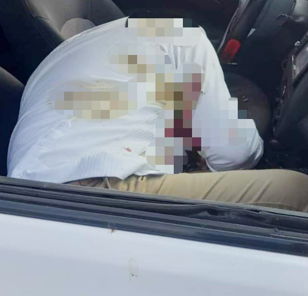 Las imágenes dejan ver a la víctima mortal que se encuentra recostado hacia su lado izquierdo, estando a bordo del lado del copiloto al interior de la unidad, pudiendo apreciarse múltiples impactos de bala, y tomando en cuenta que sólo el taxista sobrevivió y que los disparos fueron directos al pasajero, hace pensar que esté era el objetivo.