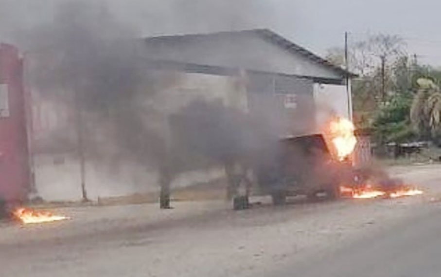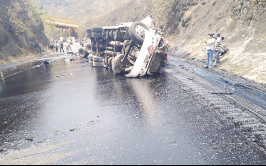 Tráiler se atora al pasar por la caseta de Fortín