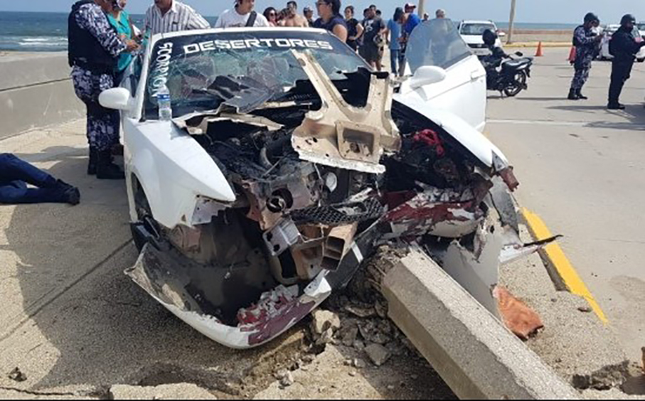 Estrella su Mustang contra poste de concret