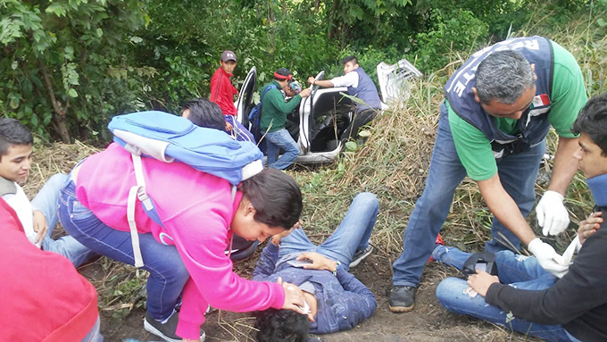 Estudiantes lesionados en choque