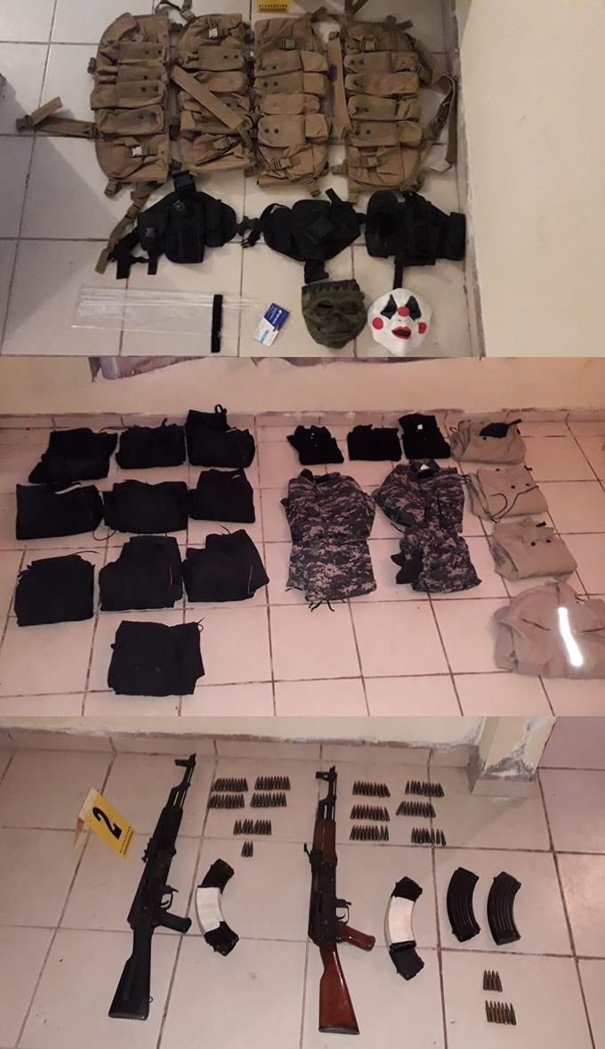 Luego de inspeccionar la casa de seguridad, que quedó bajo resguardo de la Fuerza Civil, se incautaron dos AK-47, con seis cargadores y 115 municiones; además de siete municiones para R-15 y equipo táctico.