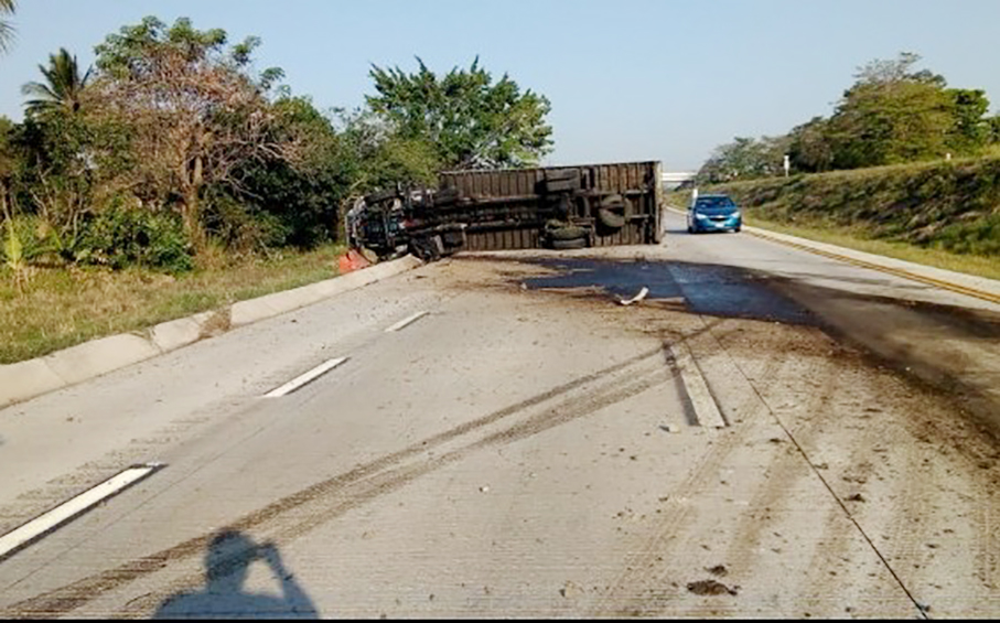Un accidente múltiple ocasionado por la volcadura de un camión de carga tipo torton con dirección al puerto de Veracruz, dejó como saldo dos hombres policontundidos; un oficial de la Policía Federal y un tráilero, daños materiales valuados en varios miles de pesos, así como el cierre parcial de la Autopista 150D Córdoba- Veracruz a la altura del kilómetro 19 perteneciente al municipio de Cuitláhuac.